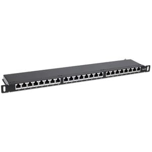 Intellinet Patch Panel, Cat6a, FTP, 24-Port, 19", 0.5U, Shielded, 90° Top-Entry Punch Down Blocks, Black - 24 x RJ-45 - Desktop Less