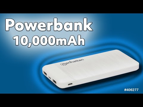 Manhattan Power Bank, 10000 mAh, Output: 2x USB-A (2.1A & 1A), Input: USB-C & Micro-USB (both 2A), White, One Year Warranty. Battery capacity: 10000 mAh, Battery technology: Lithium Polymer (LiPo). USB Type-A output ports: 2, USB Type-C ports quantity: 1. Output current: 2.1 A. Product colour: White Less