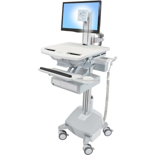 Ergotron StyleView SV44 Height Adjustable Display Stand - Up to 22" (55.88 cm) Screen Support - 14.97 kg Load Capacity - 165.43 cm (65.13") Height x 46.48 cm (18.30") Width x 78.74 cm (31") Depth - Floor Stand - Aluminium - White, Grey Less
