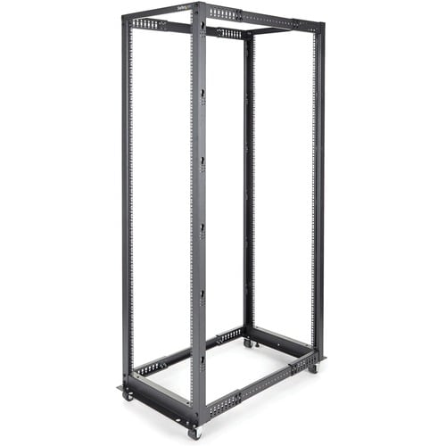 StarTech.com 42U Adjustable Depth Open Frame 4 Post Server Rack Cabinet - Flat Pack w/ Casters, Levelers and Cable Management Hooks - Store your servers, network and telecommunications equipment in this adjustable 42U rack - Compatible with HP KVM IP Console Switch - 42U Server Rack / 4 Post Rack / Adjustable Depth Rack / Equipment Rack / Telecom Rack - Adjustable mount depth from 22 - 40 in - Casters, leveling feet and cable management hooks included - Supports a static loading capacity of Less